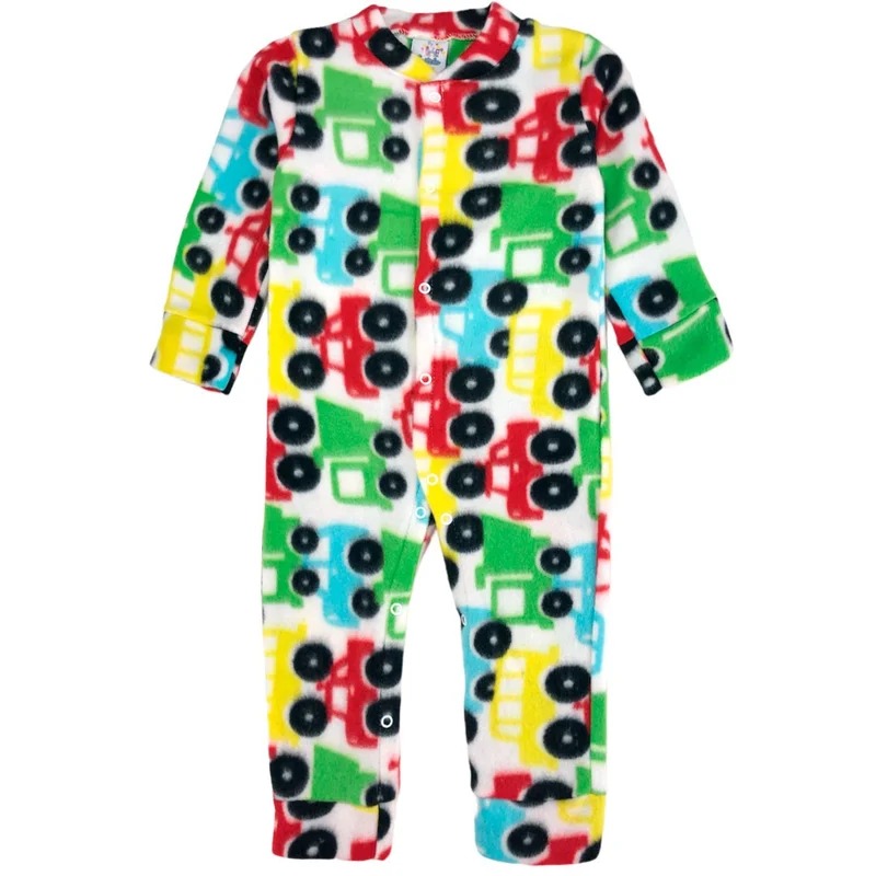 O macacão bebê menino carrinhos branco é confeccionado em soft 100% poliéster.